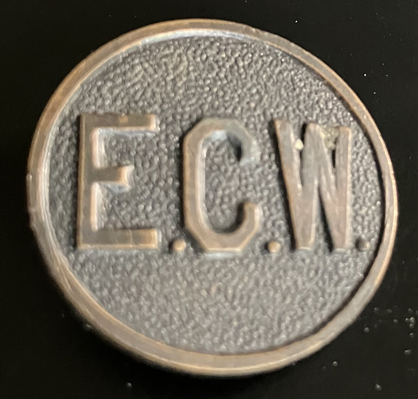 Bronze, with "E.C.W.". Screwpost back with nut. The Emergency Conservation Work Act was passed on Mar. 31, 1933. It became known as the Civilian Conservation Corps and was officially renamed in 1937. See similar image in the CCC Museum of So. Dakota. Scipio lists it on his list of collar insignia on pg. 168, plate 33, fig. 4 . | SALE $75.00 | |