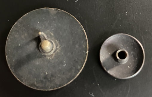 Bronze enlisted collar disk with crossed signal flags and "UVM" above. University of Vermont (UVM) was a training hub for the U.S. Army including Signal Corps. Blackened finish, screw post and nut. Have two, one with nut, one without. See Scipio pg. 234 for list of signal corps collat disks. | SALE $85.00 | |