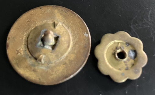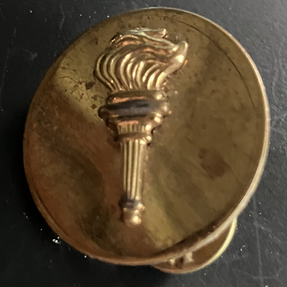 Circa WWI-1920's, Type II Disk. Gilt, with lyre in the lower angle of the crossed sabers. No screwpost or nut, has two needlepoints. See Scipio pg. 175, plate 38, fig. 16. | SALE $32.00 | |