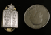 Circa WWII, it is tablet with Roman numerals to represent the Ten Commandments, with six pointed star os David above. Has adouble clutch pin back. Approximately 1" x 7/10" overall (Not including clutch backs). | SALE $ 90.00 | |