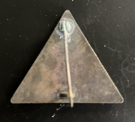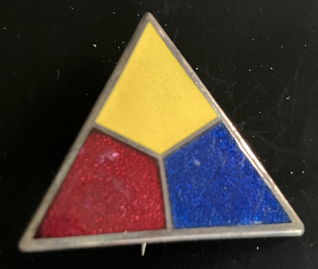 Triangle with enameled yellow, blue and red sections. Pin with c clasp. Approximately 1-1/5" x 1-3/10" overall. | SALE $ 32.00 | |