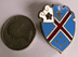 Red, white abd blue enamel insignia with blue background, red "X", four stars and a five pointed fort. Also a fleur-de-lis.Screwpost and nut on backand two needlepoints. | SALE $12.00 | |