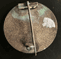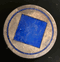 Round white metal circle with blue enamel square and thin blue circle line. T-bar pin and c clasp on back. Approximately 1-3/10" in diameter overall. | SALE $ 75.00 | |