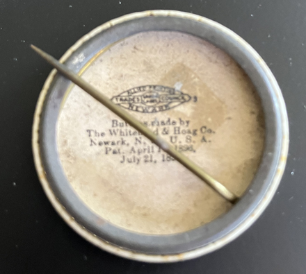 GAR Pin Button | White celluloid button with 3rd Army Corps badge in red. Has Whitehead & Hoag label inside back of button (one has offset label). Approximately 1-3/10" in diameter. | SALE $15.00 each |