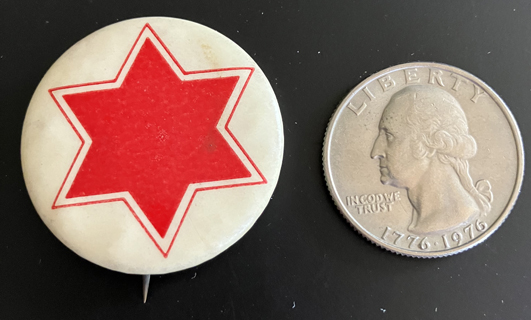 GAR Pin Button | White celluloid button with 22nd (Dept. of Washington) Army Corps badge in red. Has Whitehead & Hoag label inside back of button. Approximately 1-3/10" in diameter. | SALE $15.00 each |