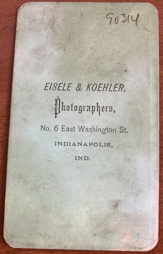 Studio portrait of a Hungarian National Guard (1848 Hungarian Revolution?). Reverse has "Eisele & Koehler, Phtographers, No.6 East Washington St., Indianapolis, Ind." on reverse. | SALE $45.00 |
