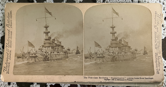 Ttitled "The U.S. Battleship 'Massachusetts'" Copyrighted 1899 by J.F. Jarvils (Publisher). Sold only by Underwood & Underwood.